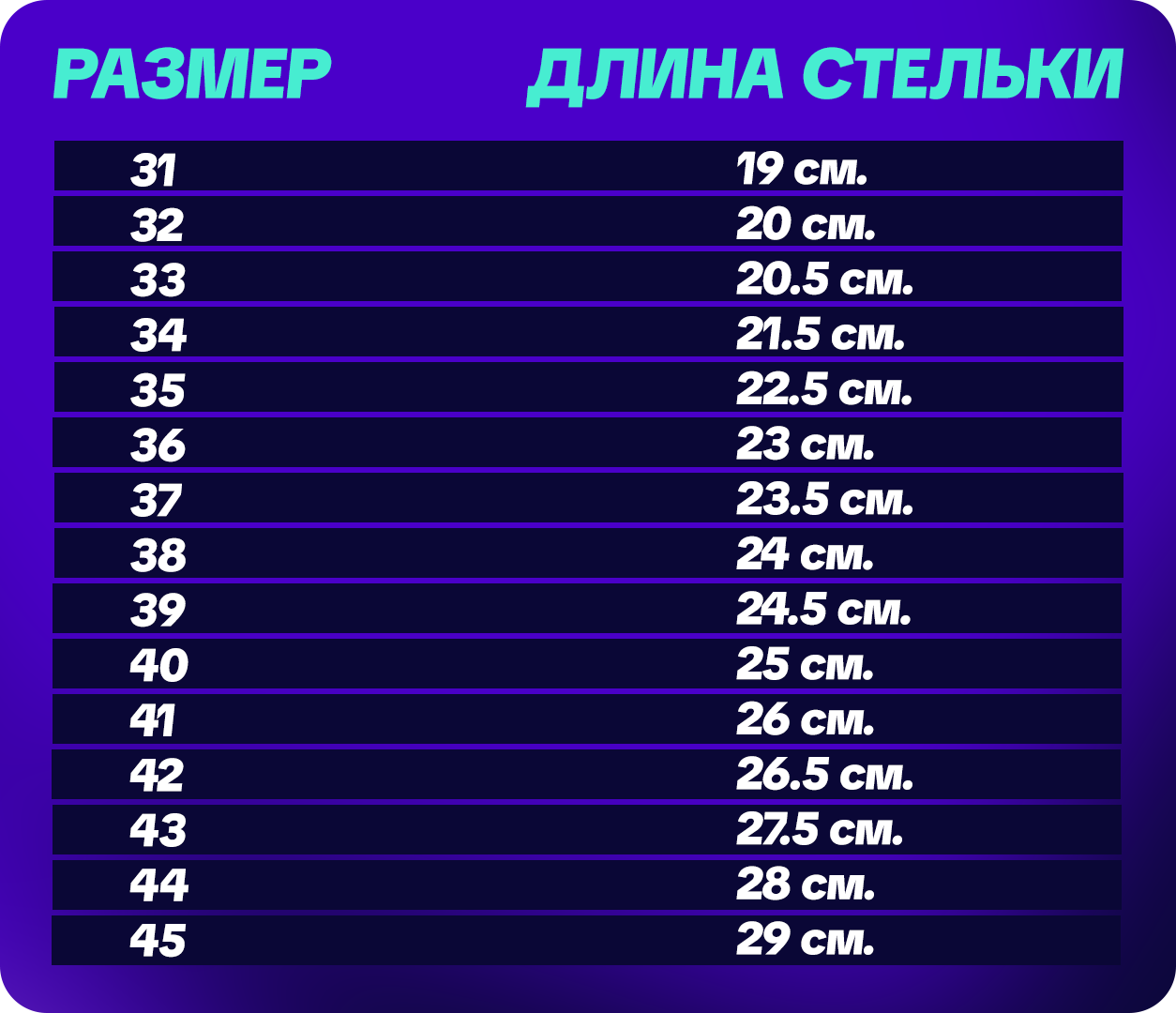 Размерная таблица